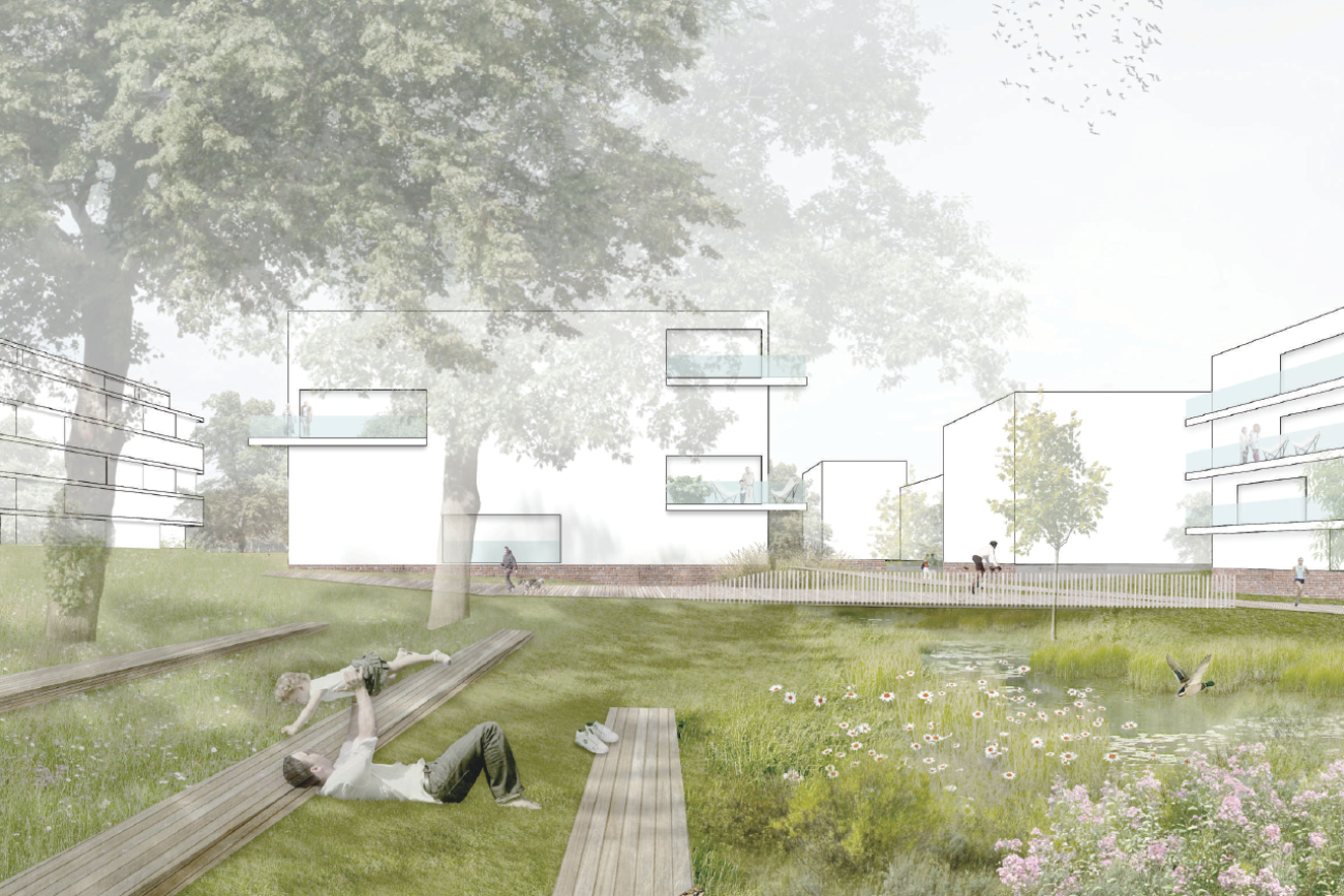 Die Ärgera, die diese Schwemmebene durchfliesst, erfährt dank diesem Projekt eine Renaturierung – ein bedeutsames Element für die lokale Biodiversität. Hier ist das Projekt gefordert, mit Sickerflächen Verbindungen zu den Böschungen am äusseren Rand des Perimeters zu schaffen.